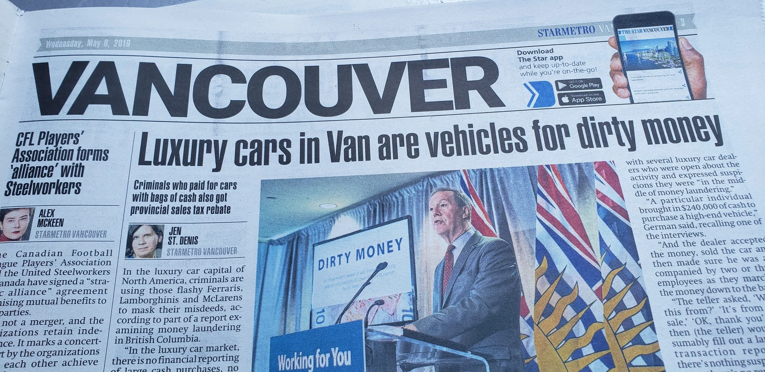What has part 2 brought to light? More dirty money of course, quite troubling examples of what has been going on in the Moneyland of Metro Vancouver. We knew it was happening, but it’s kind of bewildering when you hear the stories from report 2; “We heard stories from dealers, who described gangsters bringing bags of money into dealerships to purchase cars. The dealers then had to transport that cash to their bank, where it was accepted without hesitation. One dealer described large cash purchases occurring on a monthly basis.”. It’s quite outrageous behaviour from the gangsters, they’ve got some nerve. I find it strange that dealers would refer to them as such - but I guess a gangster is a gangster is a gangster - and then knowingly accepting the money, there is definitely some fear in the mix, as well as a healthy dose of greed. Let's go with a stereotype, they’re car dealers after all, salesmen, they sell and predicate crimes probably never entered their stream of consciousness because it was full of Canadian dollar bills. And then let’s balance it out, the car dealers are likely human, and the gangsters might not be. A tricky situation to be in without the backing of law.